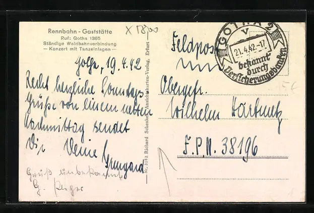 AK Gotha, Ansicht des Rennbahn-Gasthofs Boxberg