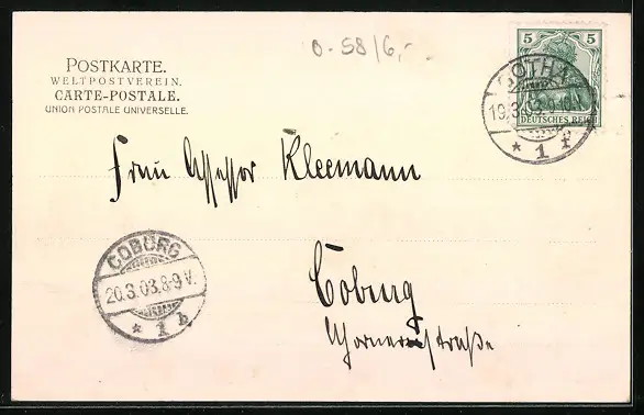 alte Ansichtskarte, gelaufen 1903, guter Zustand