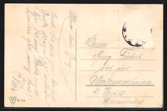 alte Ansichtskarte, gelaufen, Briefmarke entfernt, rückseitig Oberflächenschaden, Bugspur oben li., guter Zustand