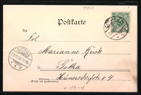 alte Ansichtskarte, gelaufen 1899, guter Zustand