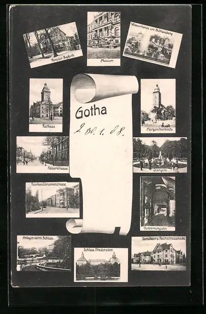 AK Gotha, Museum, Pension Seyfarth, Rathaus, Margarethenkirche