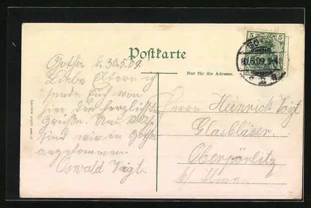 alte Ansichtskarte, gelaufen 1909, Eckknicke unten, guter Zustand
