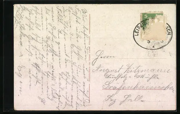 alte Ansichtskarte, gelaufen, Briefmarke entfernt, rückseitig Oberflächenschaden, Kante bestoßen oben mittig, guter Zustand