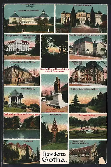 AK Gotha, Schloss Friedenstein, Stadtbad, Denkmal Ernst der Fromme