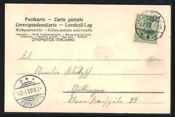 alte Ansichtskarte, gelaufen 1903, guter Zustand