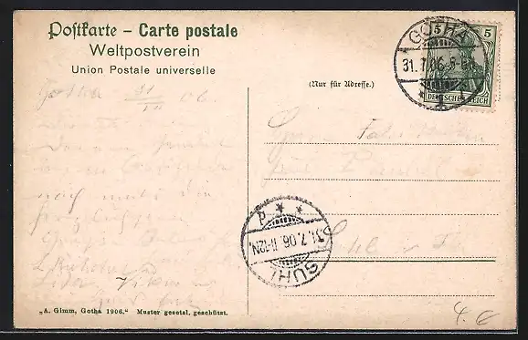 alte Ansichtskarte, gelaufen 1906, Eckknick oben re., guter Zustand