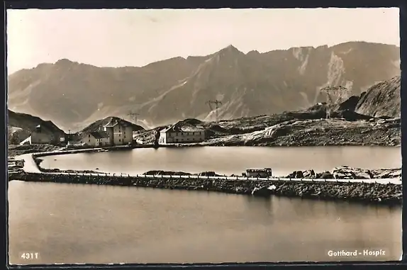AK Gotthard-Hospiz, Ortspartie am Wasser