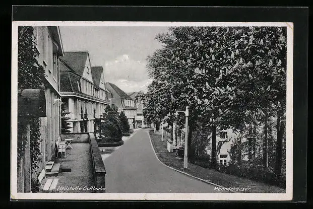 AK Gottleuba, Strasse mit Männerhäuser