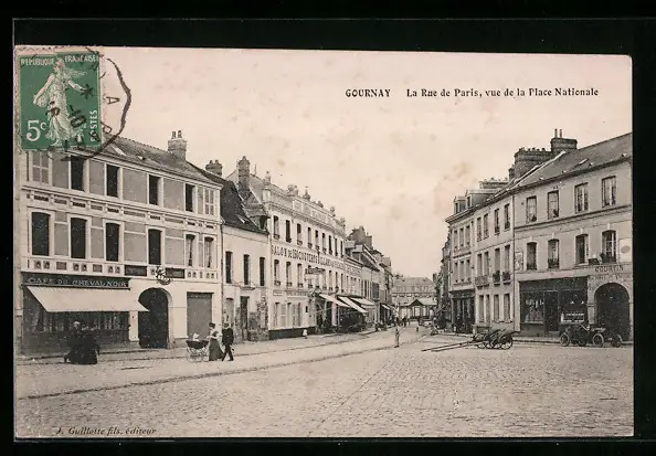 AK Gournay, La Rue de Paris, vue de la Place Nationale