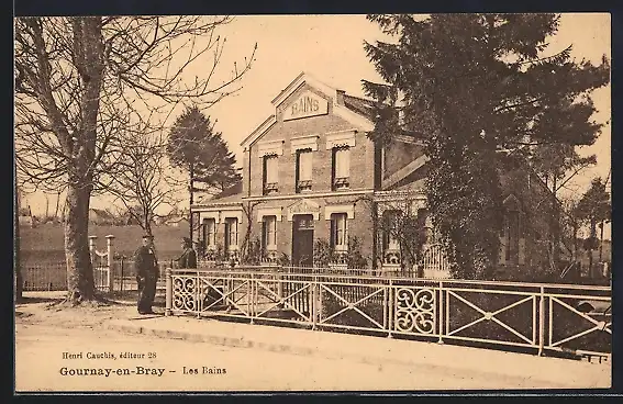 AK Gournay-en-Bray, Les Bains et la promenade arborée