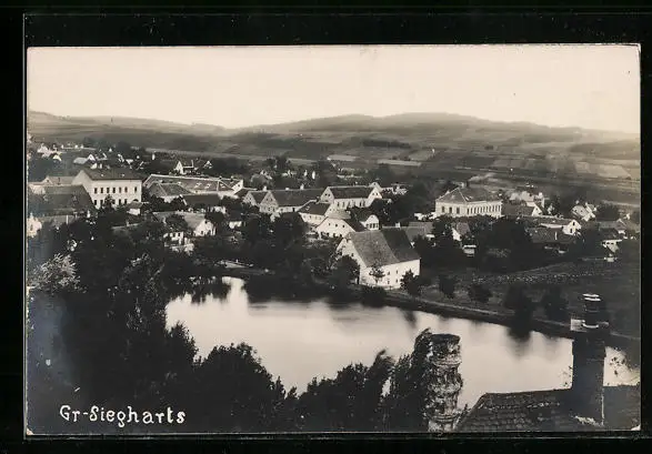 AK Gr. Siegharts, Ortsansicht mit Fernblick aus der Vogelschau