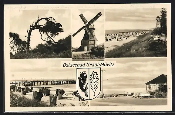 AK Graal-Müritz, Ortsansicht, Strandpartie, Windmühle