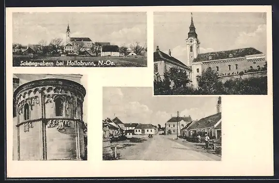 AK Grabern bei Hollabrunn, Schöngrabern, Kirche, Strassenpartie