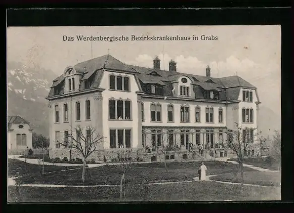 AK Grabs, Waldenbergisches Bezirkskrankenhaus mit Arzt im Garten