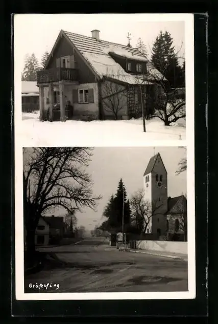 AK Gräfelfing, Kirchturm und Wohnhaus