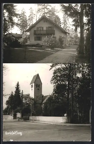 AK Gräfelfing, Strassenpartie an der Kirche, Haus mit Garten