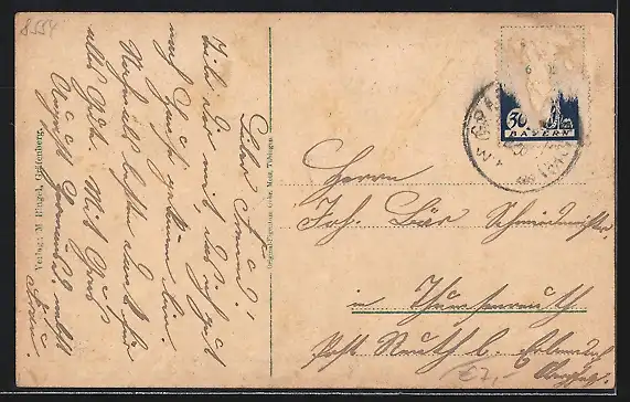 alte Ansichtskarte, gelaufen, Briefmarke entfernt, guter Zustand