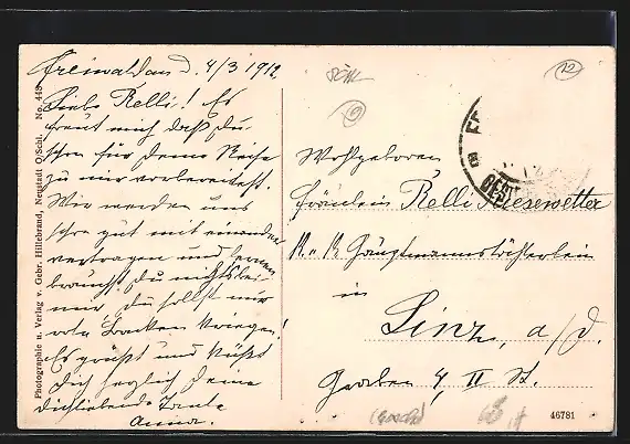 alte Ansichtskarte, gelaufen 1912, Briefmarke entfernt, guter Zustand