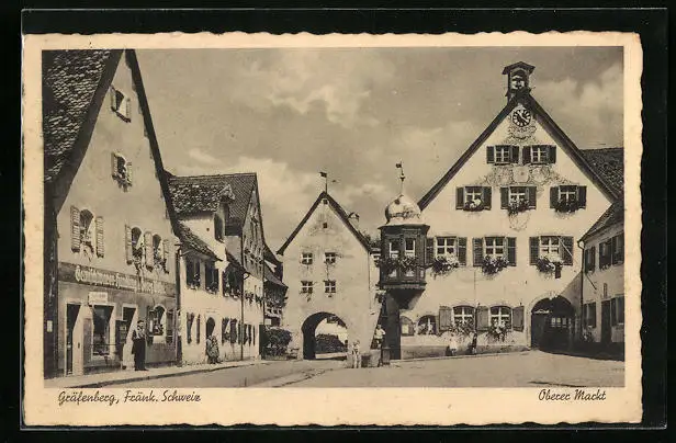 AK Gräfenberg, Partie am Oberen Markt mit Gemischtwarenhandlung