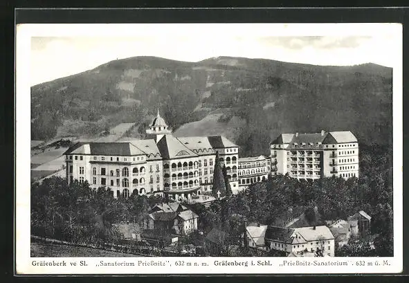 AK Gräfenberg, Sanatorium Priessnitz mit Berg dahinter