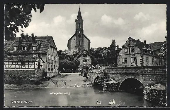AK Gräfendorf / Ufr., Flusspartie mit Kirche