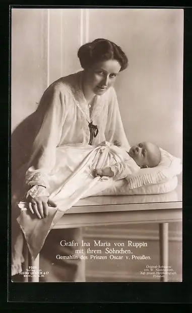 AK Gräfin Ina Maria von Ruppin mit ihrem Sohn