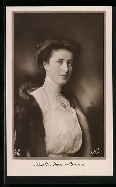AK Gräfin Ina Marie von Bassewitz, Portrait im Pelz