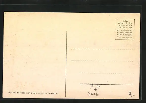 Personenbezogene Daten auf der Rückseite der Karte wurden durch blauen Textmarker unkenntlich gemacht. Die blauen Stellen sind auf die Vorderseite durchgeweicht und wirken sich negativ auf das Postkartenfoto aus