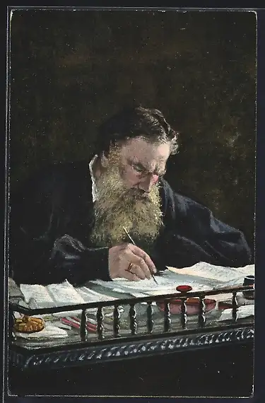 AK Graf Leo Tolstoi an seinem Schreibtisch