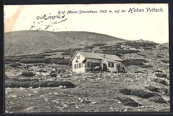 AK Graf Meran Schutzhaus, Felspartie am Haus auf dem Hohen Veitsch
