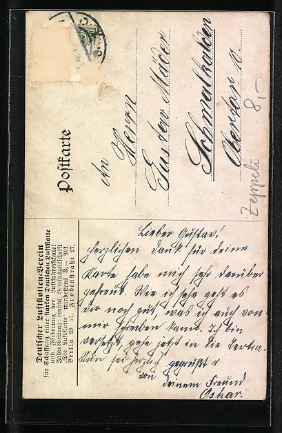 alte Ansichtskarte, gelaufen, Briefmarke entfernt, rückseitig Oberflächenschaden, Bugspur re. oben, guter Zustand