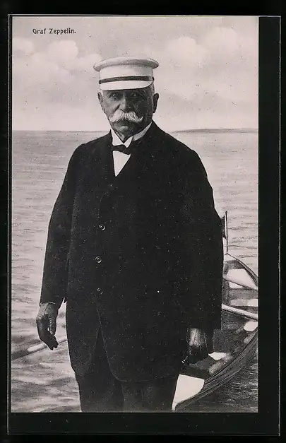 AK Graf Zeppelin mit Schirmmütze und einem Boot am Ufer