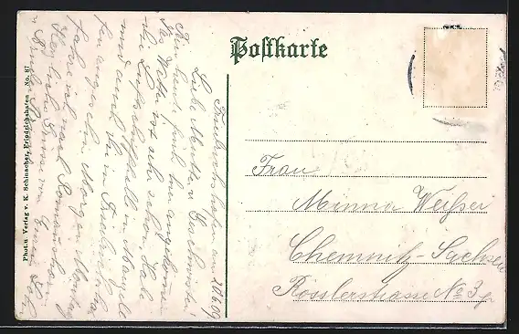 alte Ansichtskarte, gelaufen, Briefmarke entfernt, guter Zustand