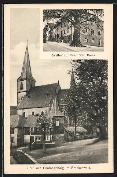 AK Grafengehaig, Gasthof zur Post, Strassenpartie mit Kirche