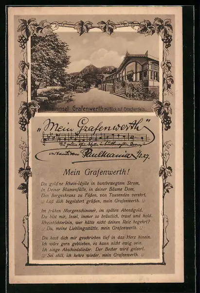 AK Grafenwerth, Gasthaus mit Blick auf Drachenfels