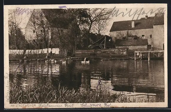 AK Grafenwöhr, Am Stadtweiher, mit Wäscheleine