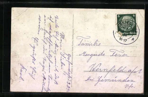 alte Ansichtskarte, gelaufen, Eckknicke oben, guter Zustand