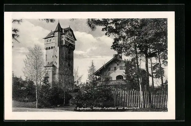 AK Grafenwöhr, Militär-Forsthaus und Wasserturm