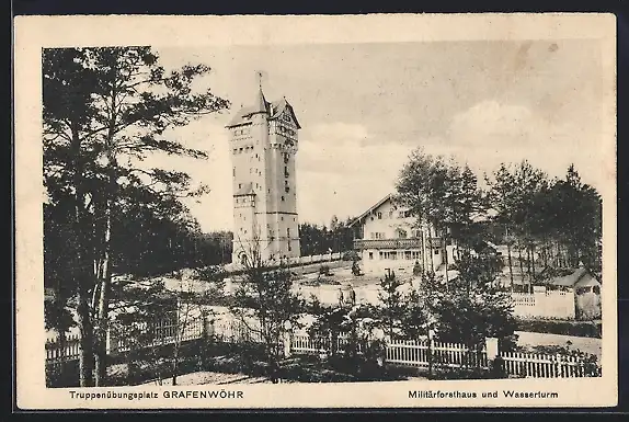 AK Grafenwöhr, Truppenübungsplatz, Militärforsthaus und Wasserturm