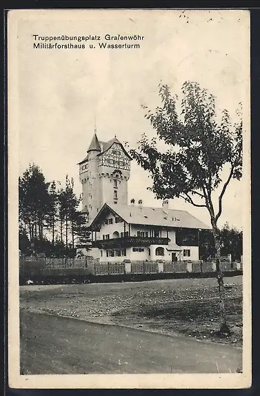 AK Grafenwöhr, Truppenübungsplatz, Militärforsthaus und Wasserturm