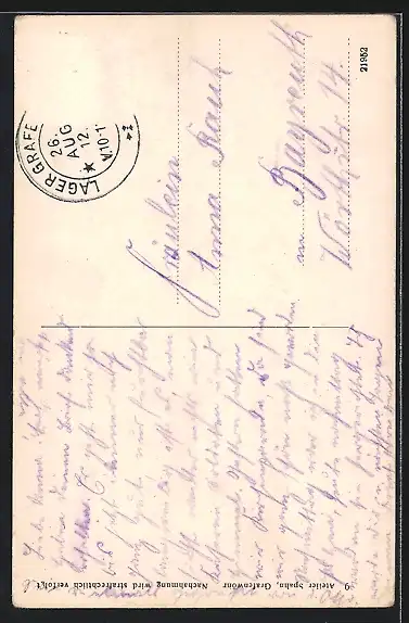 alte Ansichtskarte, gelaufen 1912, Briefmarke entfernt, Eckknick unten li., Stempelspur, guter Zustand