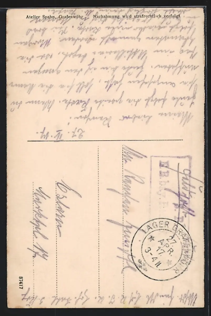 alte Ansichtskarte, gelaufen 1917 als Feldpost, Eckknick rechts oben und rechts unten, guter Zustand