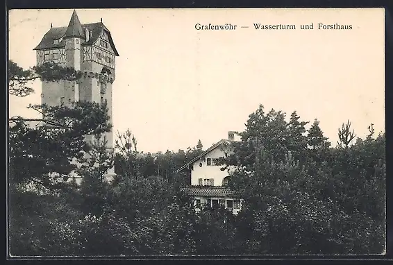 AK Grafenwöhr, Wasserturm und Forsthaus