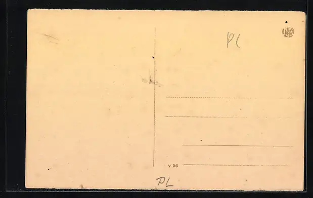Personenbezogene Daten auf der Rückseite der Karte wurden durch blauen Textmarker unkenntlich gemacht. Die blauen Stellen sind auf die Vorderseite durchgeweicht und wirken sich negativ auf das Postkartenfoto aus