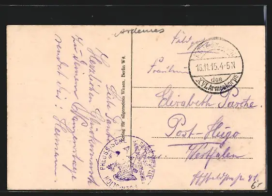 alte Ansichtskarte, gelaufen 1915, Stempelspur, guter Zustand