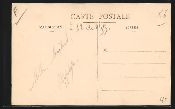 Personenbezogene Daten auf der Rückseite der Karte wurden durch blauen Textmarker unkenntlich gemacht. Die blauen Stellen sind auf die Vorderseite durchgeweicht und wirken sich negativ auf das Postkartenfoto aus