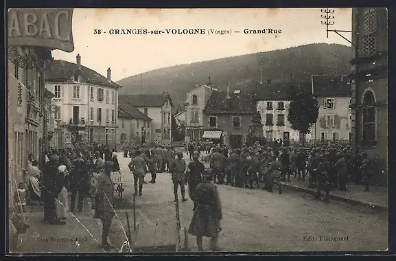 AK Granges-sur-Vologne, Grand`Rue animée par des soldats et des passants