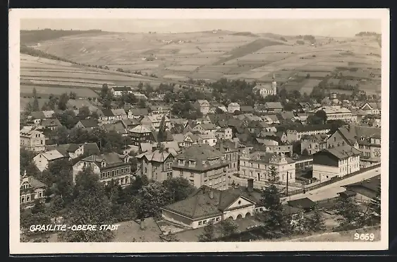 AK Graslitz, Obere Stadt aus der Vogelschau