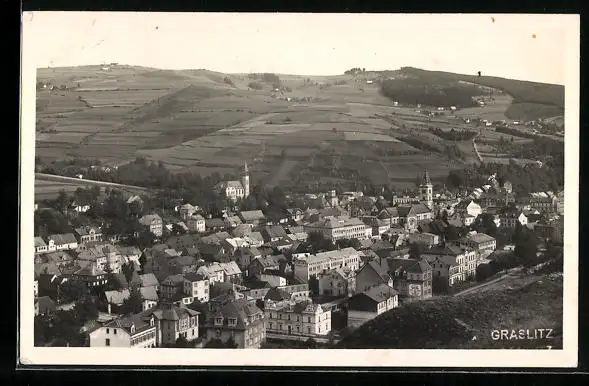 AK Graslitz, Ortsansicht aus der Vogelschau mit Umland