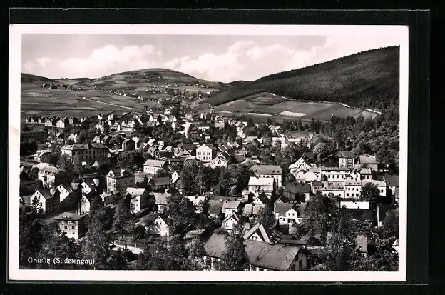 AK Graslitz, Ortsansicht mit Fernblick aus der Vogelschau
